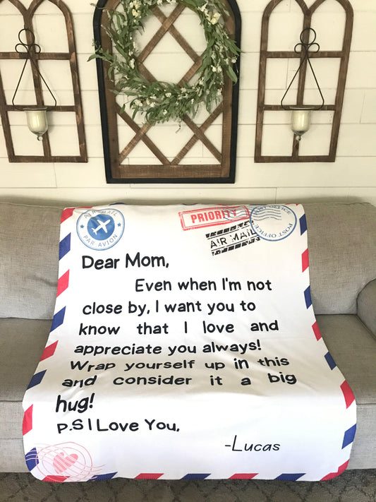 Mom Air Mail Personalized Premium Mink Sherpa Blanket (Throw) -50X60