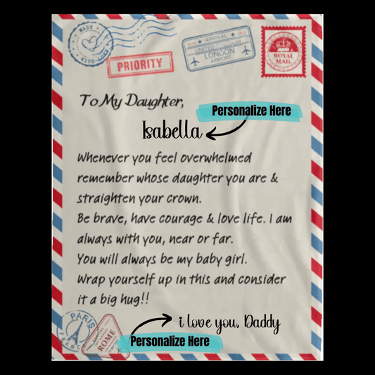 Personalize Daughter Name& From| Crown | Premium Plush Blanket| Daughter gift, keepsake for Daughter.