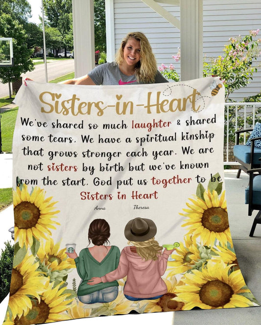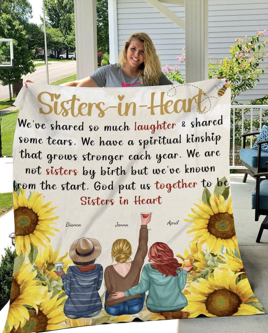 Sisters in Heart| Personalized Blanket as Birthday, Friendship Day Gift for Besties| Friends Blanket, Soul Sisters -Cozy Plush Fleece Blanket – 50×60