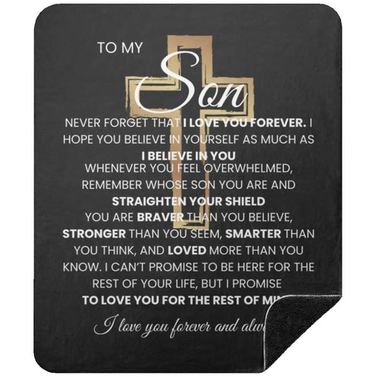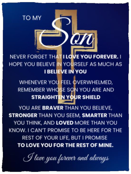 Son Gift Cross Blanket Never Forget That I Love You, Keepsake For Him Son Christmas Gift Cozy Fluffy Blanket