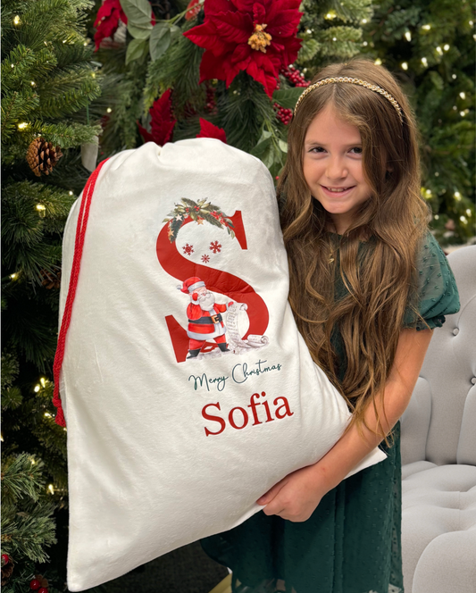 Personalized Santa Sack| Christmas Gift Bag with Drawstring| Large Christmas Sacks for Party & Holiday Decorations| Velvet Sack| Canvas Sack