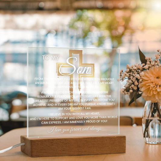 Son Graduation Gift-So Proud Of You Acrylic Plaque LED option Promotion Gift Gift for Son You Did It Grad
