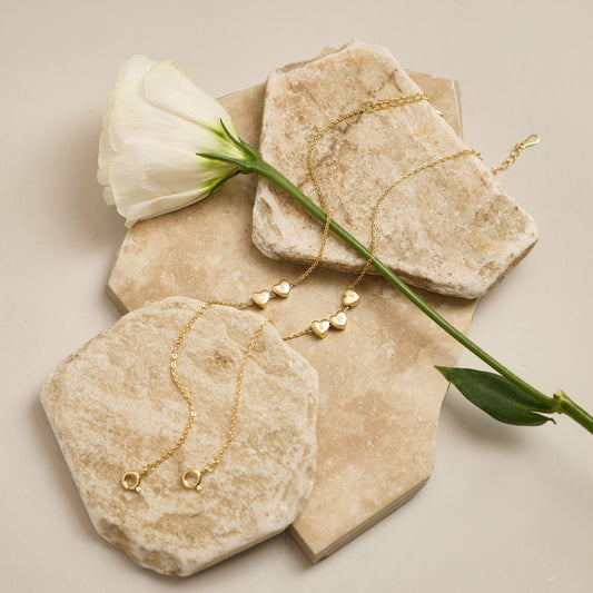 Custom Mom Gold Letter Bracelet With Tiny 3D Initial Heart Charms Minimalist multiple kid name bracelet