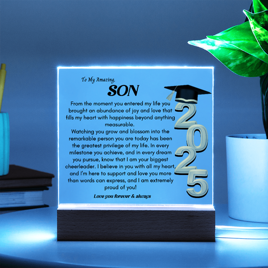 Graduation Gift for Son Nightlight Acrylic Plaque Promotion Gift 2025 Graduation Son gift for him Going away gift for Child Keepsake