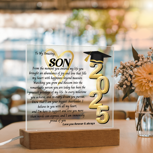 Graduation Gift for Son Nightlight Acrylic Plaque Promotion Gift 2025 Graduation Son gift for him Going away gift for Child Keepsake