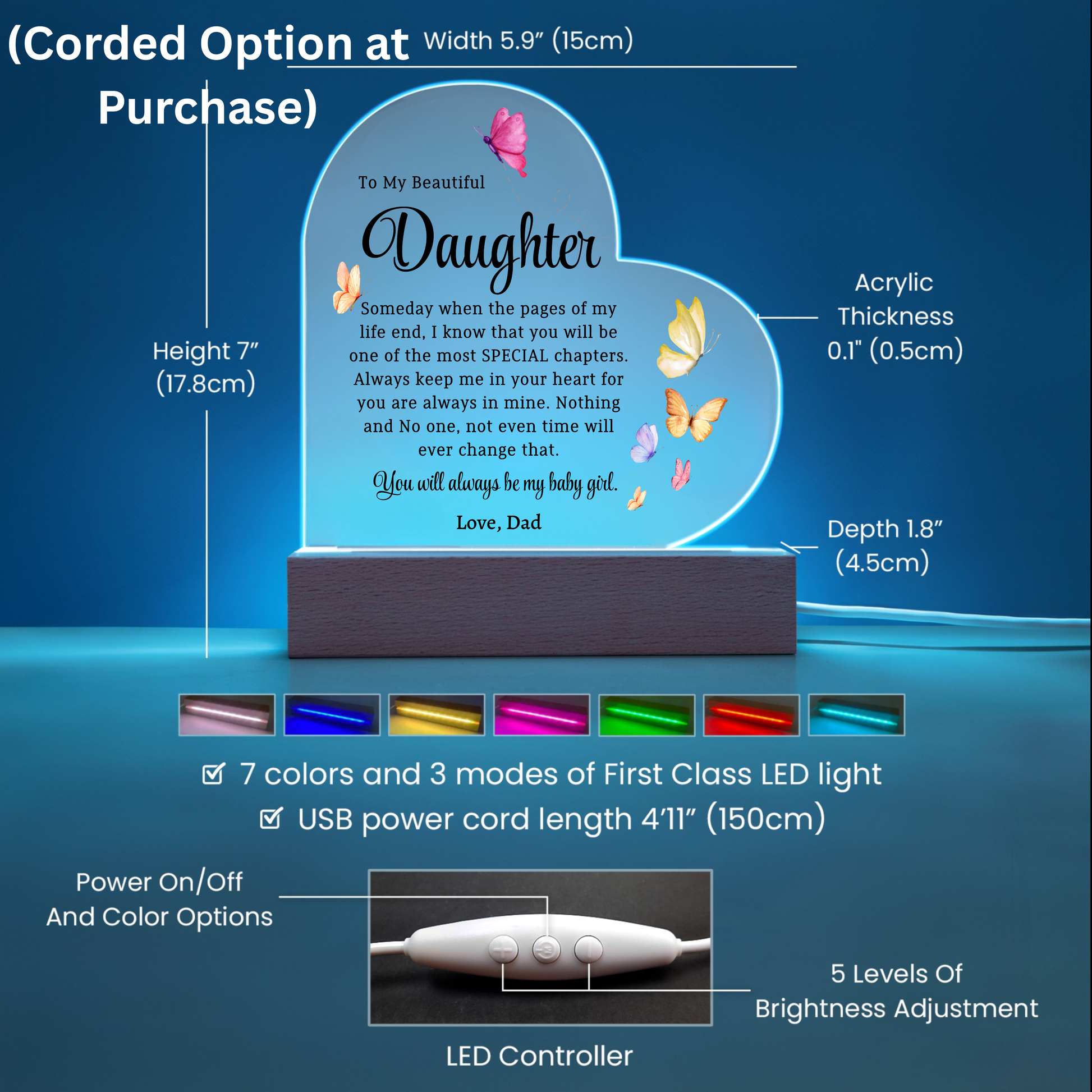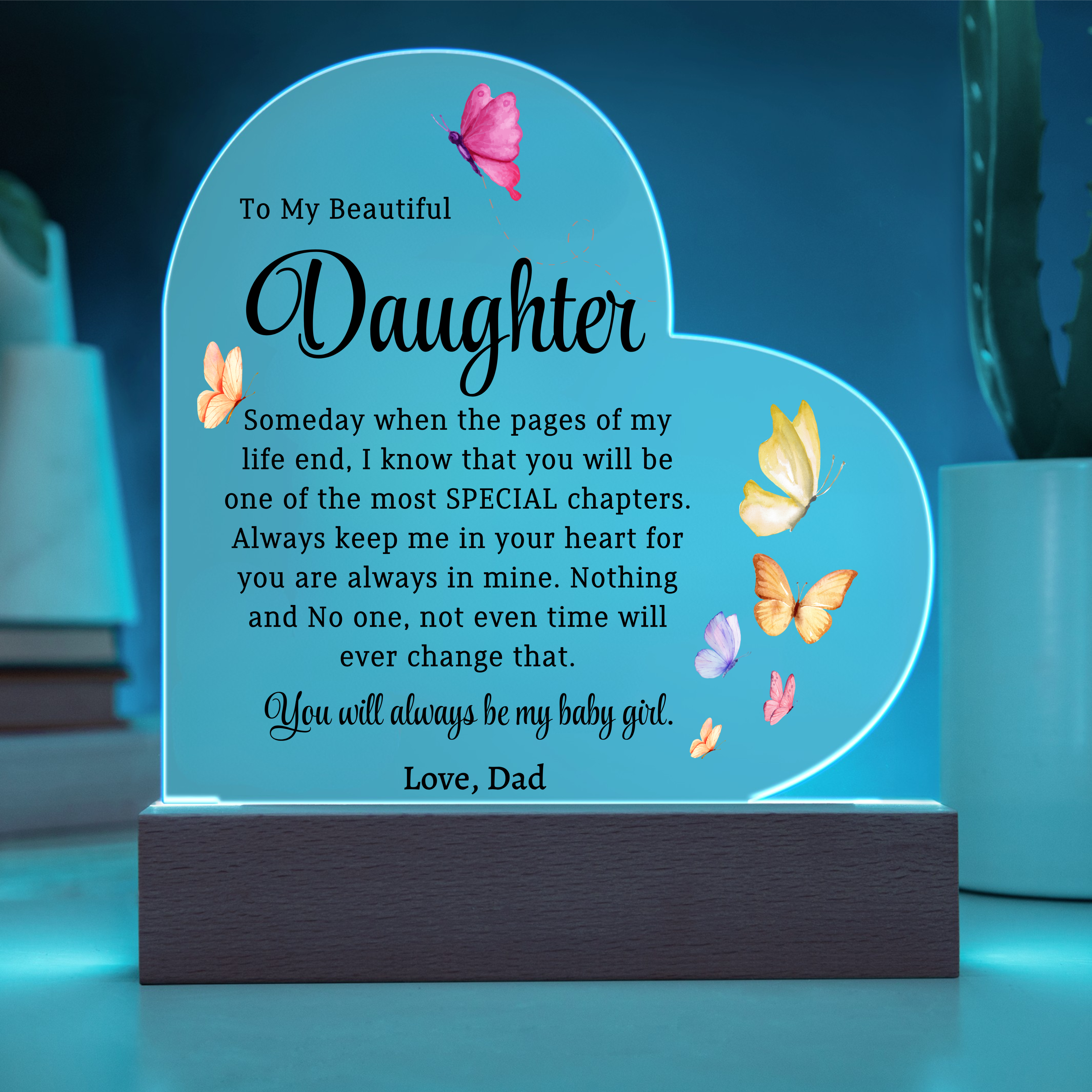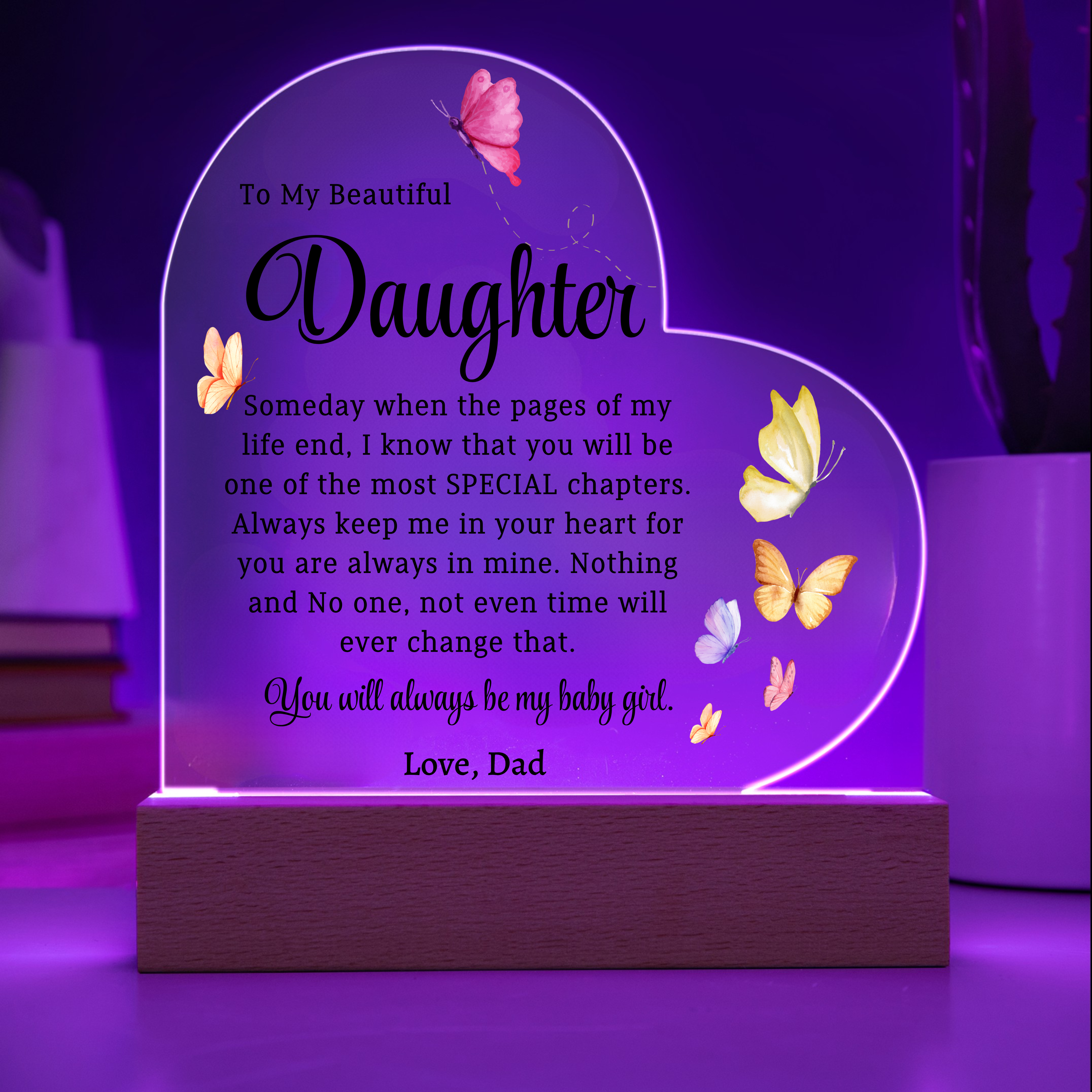 Gift For Daughter Color Changing Acrylic Heart Keepsake My Beautiful Daughter from Dad, Daughter Birthday gift for her Personalized Christmas gift