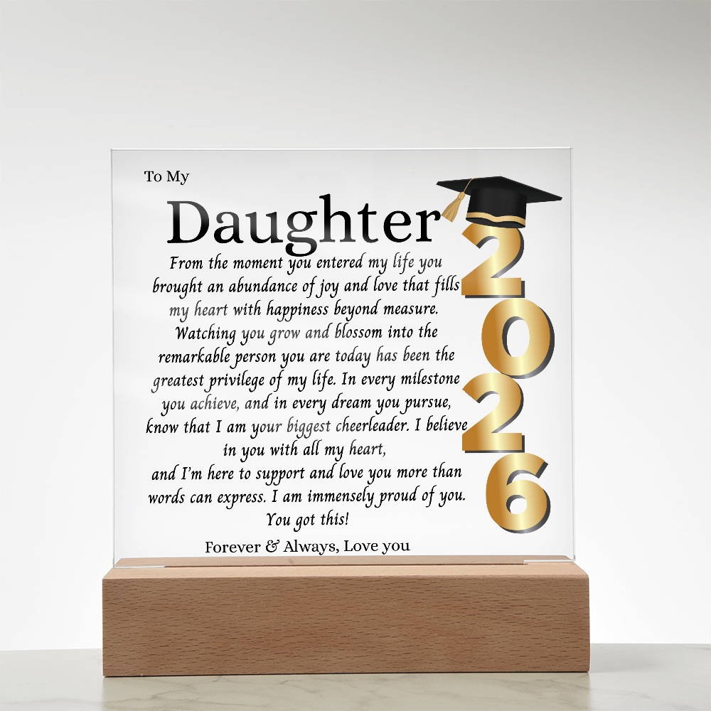 Daughter Graduation Gift- "So Proud Of You" Keepsake with Nightlight LED option Acrylic Plaque Graduation Gift for Daughter Promotion Gift from Mom gift from Dad