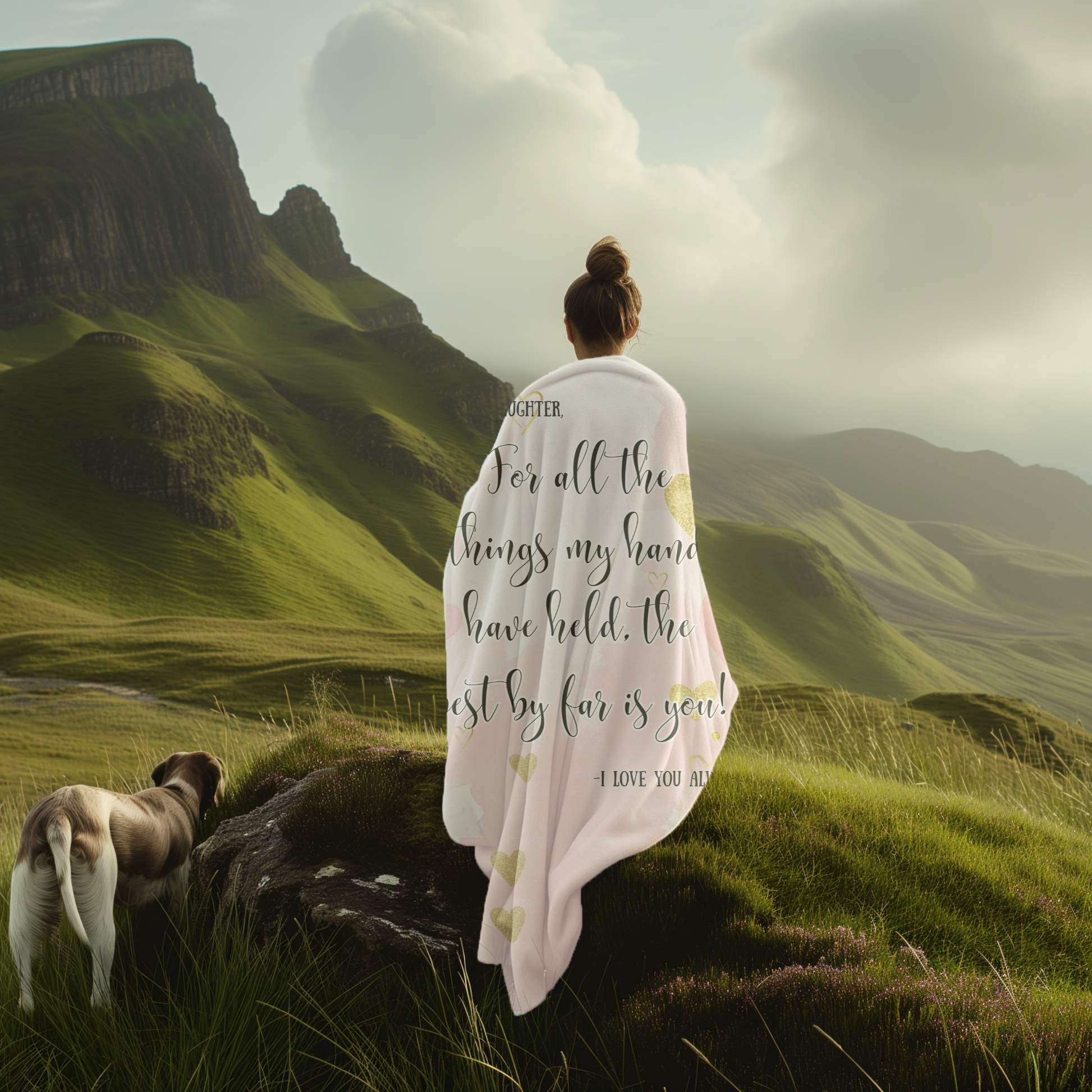 Show your daughter she will always be your greatest treasure with this cozy throw blanket with hearts—a timeless reminder of unconditional love.